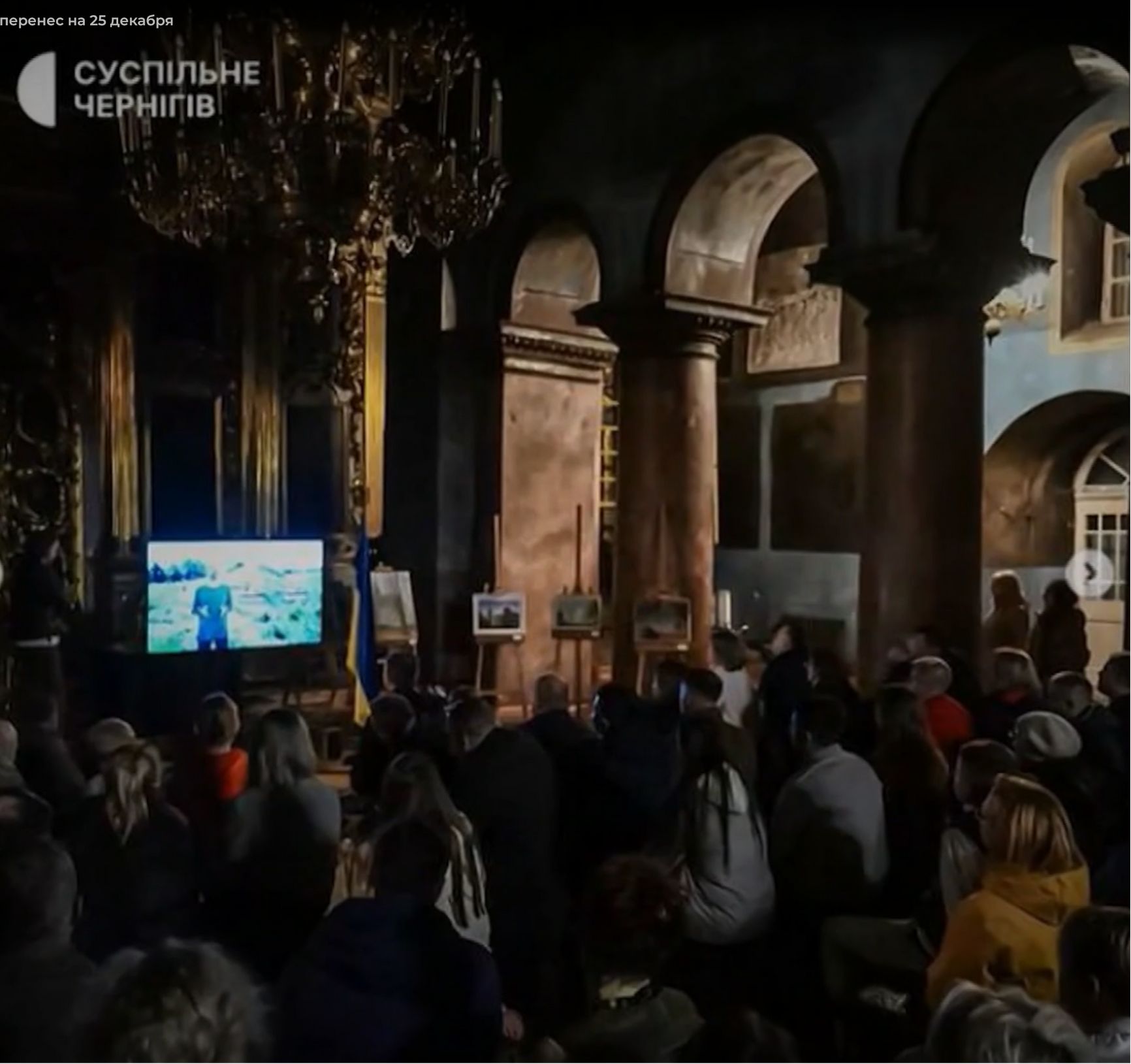 В кинотеатр собор, конечно, не превращали, да и на кадрах, показанных Первым каналом, видно, что там всего лишь установили телевизор. Было это 1 ноября 2024 года, когда в храме, временно открытом для посетителей в качестве музея, организовали презентацию документального фильма «Черниговское княжество. 1000 лет».