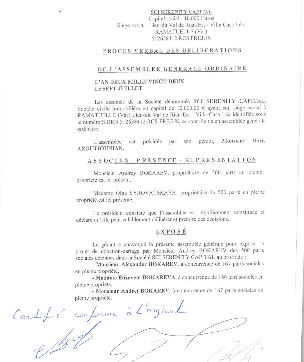 To date, underage Kamilla, Alexandra, and Vladimir own villas on the Côte d'Azur through Ecossaise Property SCI and Ecossaise Property II SCI, of which they are also listed as beneficiaries.