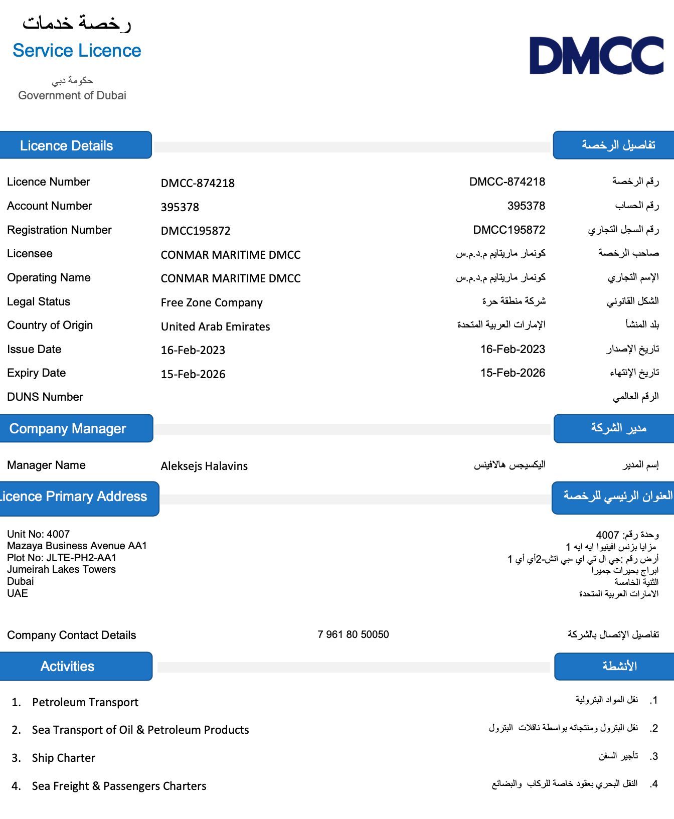On his LinkedIn profile, Haļavins identifies himself as the beneficiary and CEO of the Conrad Management Company. The Insider has obtained several residency permits issued in the UAE to employees of the Russian state-owned company Promsyrioimport. In some cases, Conrad Management Company is listed as the “sponsor” for these individuals' stays in the UAE. FGUP Promsyrioimport (ФГУП «Промсырьеимпорт») is a company under the jurisdiction of the Russian Ministry of Energy that handles maritime shipments of oil and petroleum products. This company is no stranger to sanctions violations: even before Russia’s full-scale invasion of Ukraine, Promsyrioimport was sanctioned by Kyiv for supplying fuel to Crimea, and in 2018, the firm was sanctioned by the U.S. for its role in facilitating Iranian oil deliveries to Syria, bypassing restrictions imposed by Washington.