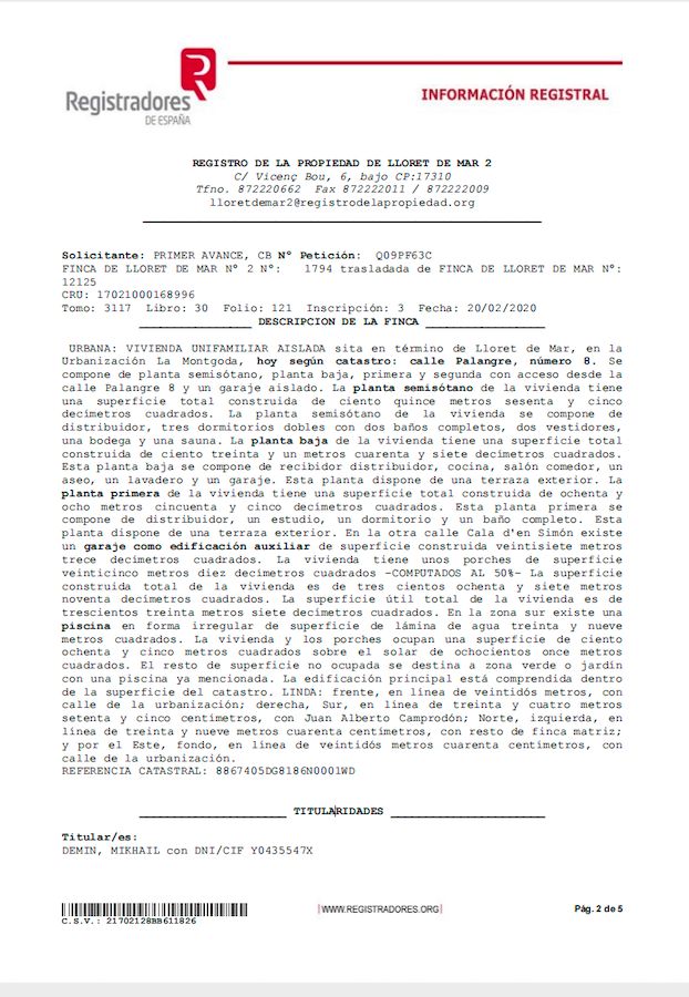 The Insider was able to confirm that Demin owns four properties in Spain: a penthouse in Barcelona, a house in Blanes near Girona, and both an apartment and a villa with a pool in the Catalonia region’s Lloret de Mar.