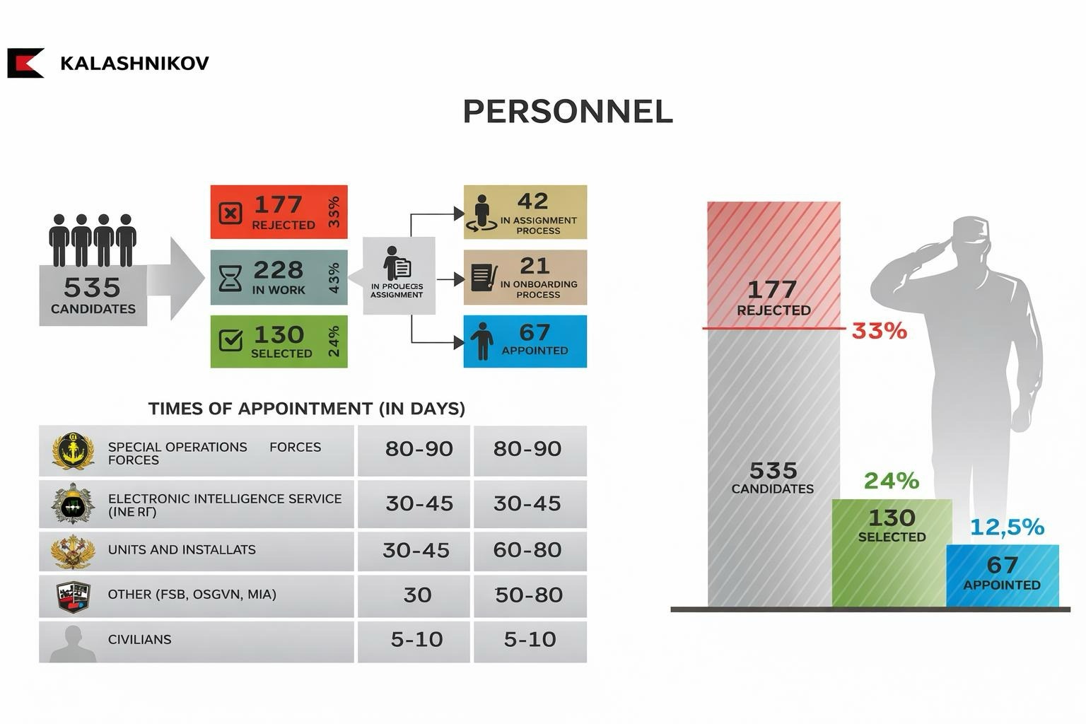 The latter quality was on full display in the PowerPoint presentation announcing the unit's structure to its Kremlin sponsors. Replete with infographics, organizational charts, growth projections, and icons of tanks and drones, it was indistinguishable from a Kalashnikov boardroom slide show. It also proved unexpectedly informative: Western intelligence operatives and investigative journalists — including the authors of this investigation — obtained it within months of its creation, offering a look at the entire anatomy and organizational structure of Putin’s new top-secret kill squad.