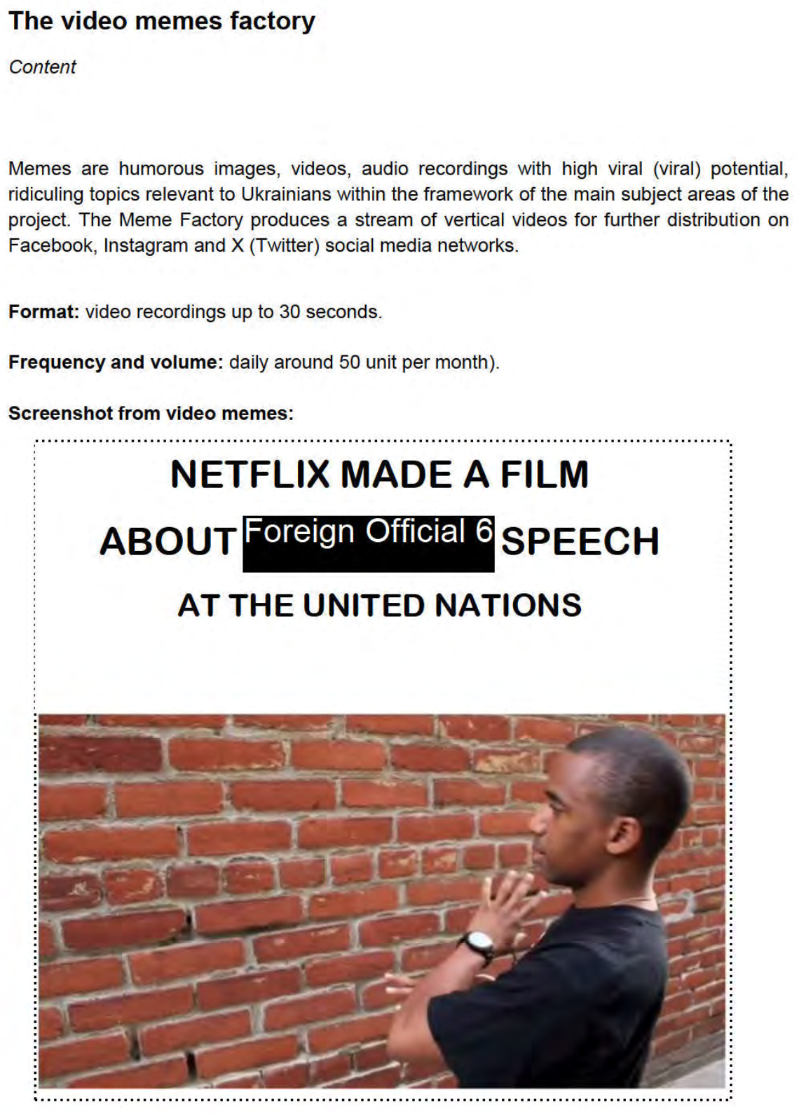One of the SDA’s typical tactics has been to use a network of bots to spread fake news purporting to come from respected Western publications. The strategy relies on social media users reposting these messages without verifying whether the media outlets actually reported anything of the sort. The tactic has been dubbed “Doppelgänger” in the Western press. Another area of focus for the Kiriyenko-Zakharova team is “memes”: Gambashidze’s team devises ways to package the desired narratives using already well-known and popular memes, then distributes them on social media, hoping they will go viral or be reposted by a popular account with a large audience. Particularly successful cases (for example, if a meme was reposted by Elon Musk) are reported at meetings in the Presidential Administration, which are attended by Kiriyenko.