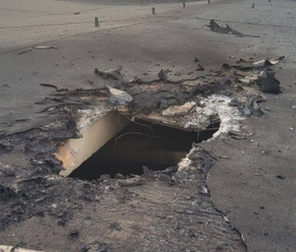 Vladimir Rogov, the head of the Russia-appointed administration of Zaporizhzhia, Ukraine, has shared a photo of the breached protective cover over Special Building No. 1 at the Zaporizhzhia NPP on his Telegram channel.