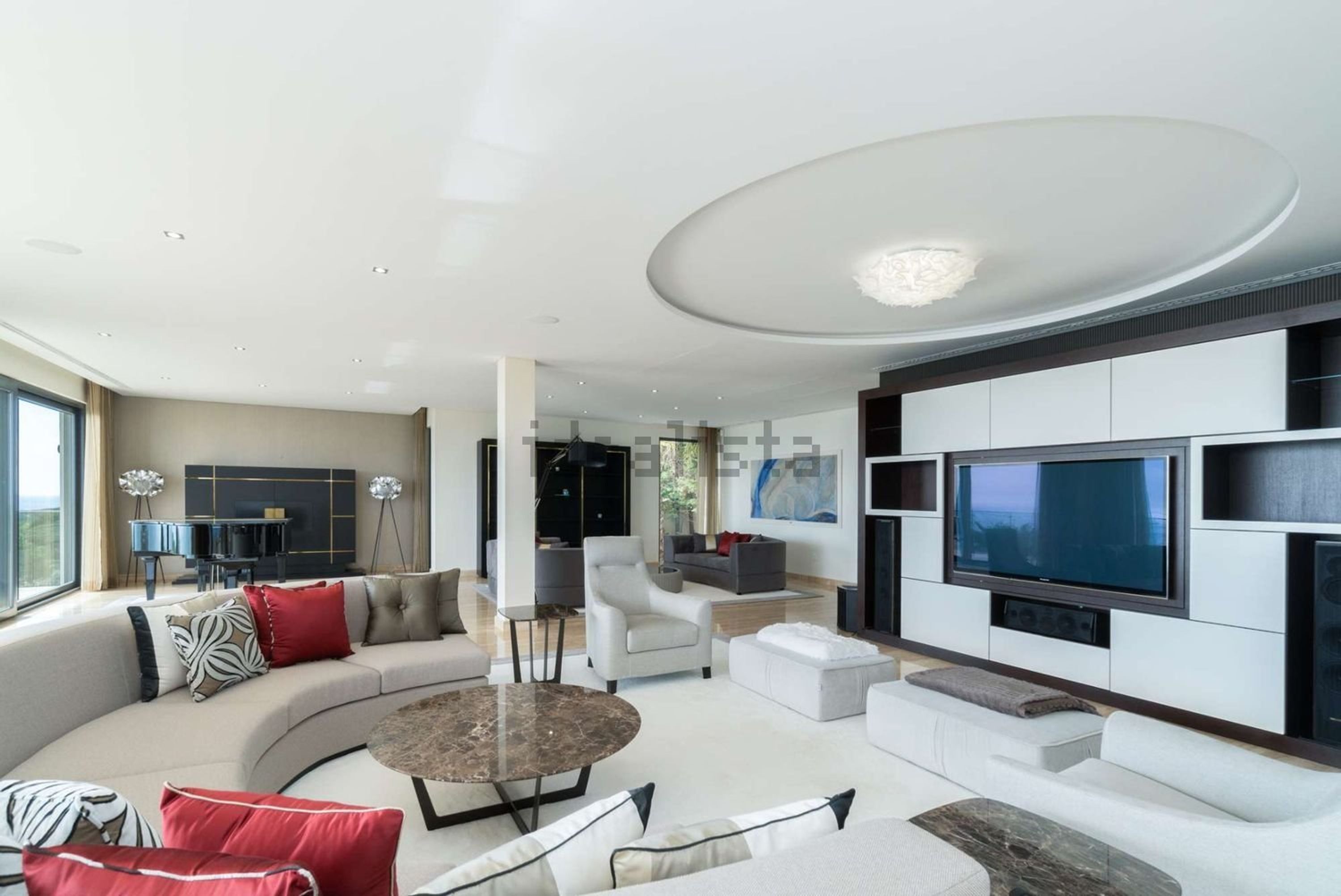 Alburov also published photos of the house interiors. There is a hall, connected with a living room and a dining-room, with the total area of nearly 180 square meters. There are also several bedrooms in the government official's family house, a drawing room, which overlooks the ocean, a suite of rooms comprising a dressing room, a bathroom and a shower of about 100 square meters, an office, a gym, two kitchens, and a pond with a bridge in the courtyard.