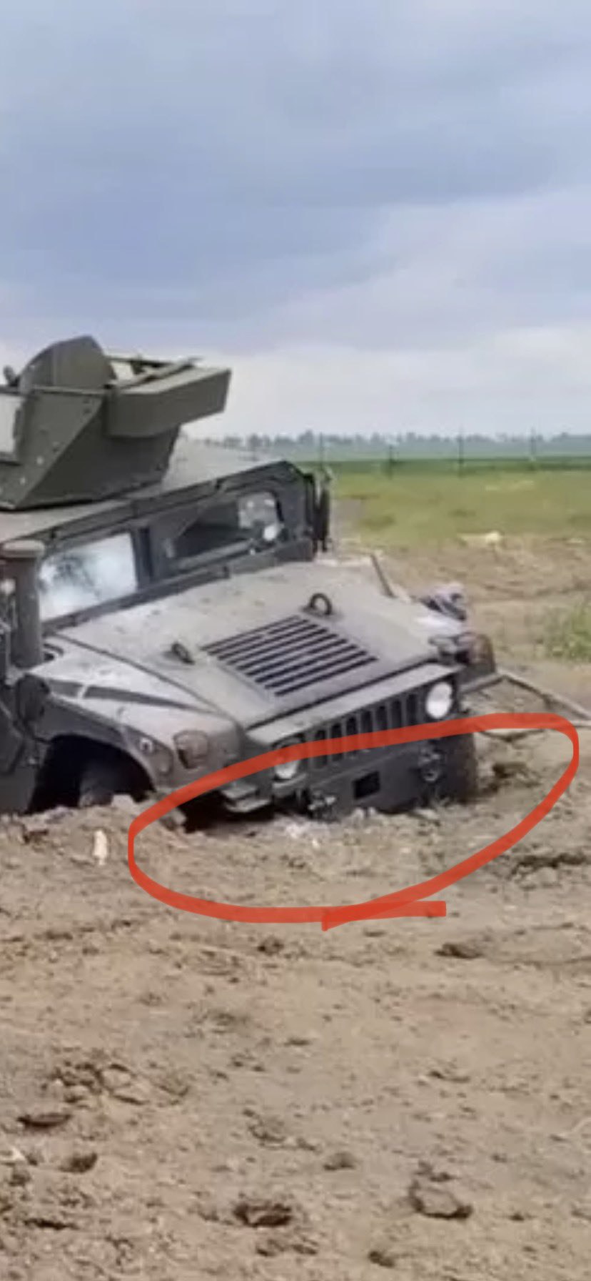 A Twitter user with the nickname Jack's House, whose tweet was retweeted by Bellingcat founder Eliot Higgins, wrote that the photos, which show two M1151 HMMWV infantry mobility vehicles allegedly abandoned in a trench, show signs of being staged. He believes that the vehicles were not stuck, but were pushed into the trench, as evidenced by a rut under the right tire of the first vehicle. The second one, judging by the image, should have hit the wall of the ditch, but that would have caused ground to be thrown out of it, which is absent from the image. The analyst believes that both vehicles were brought to the location by a crane to make the picture look more dramatic.