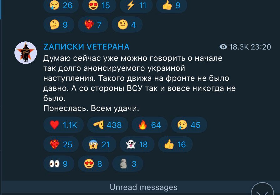 Russian pro-war channels wrote that Ukraine’s much-awaited counteroffensive has begun.