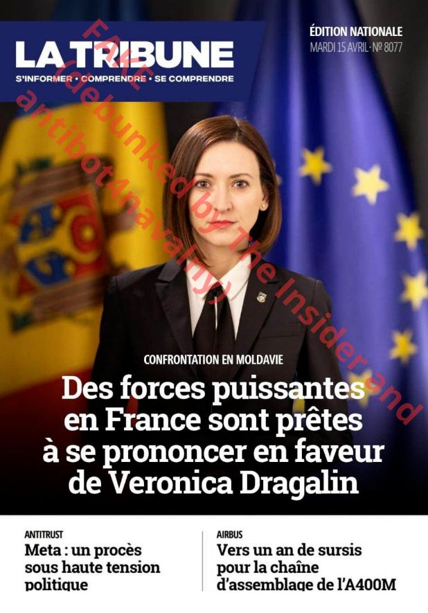 Several of the videos also mention Veronica Dragalin, the former head of Moldova’s Anti-Corruption Prosecutor’s Office, who resigned voluntarily in February of this year. One fabricated video falsely claims that Dragalin pledged to send evidence to 300 European media outlets alleging that Maia Sandu accepted bribes and won the presidential election through fraud. Dragalin has not yet commented on these claims. She said her resignation was due to her opposition to a draft law proposing the merger of the Anti-Corruption Prosecutor’s Office with the Office for Combating Organized Crime and Special Cases into a new unified structure, which she described as a “threat to justice.” Dragalin is also featured on a fake La Tribune magazine cover being circulated by the Matryoshka network.