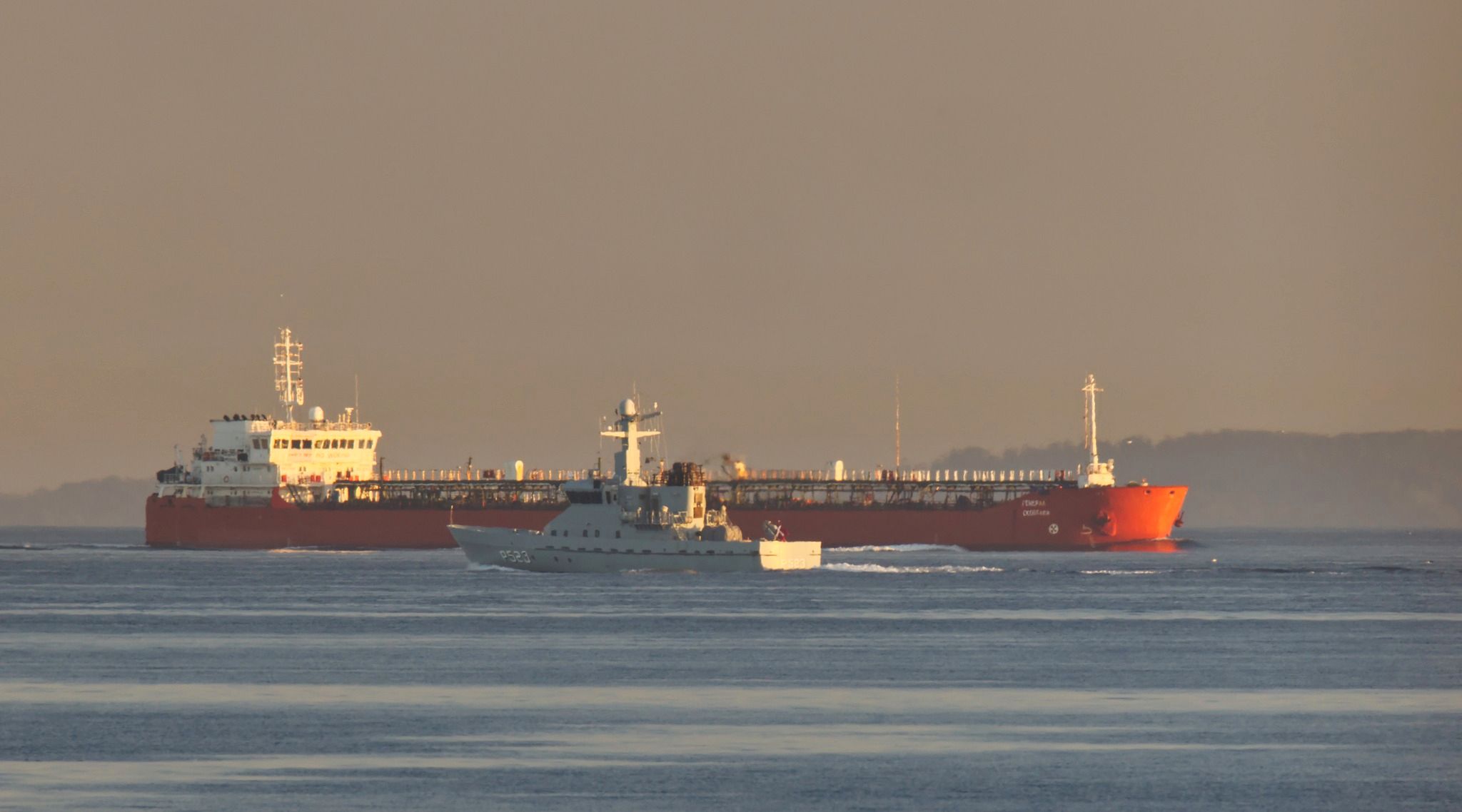 The Russia-flagged oil tanker General Skobelev making its way through Denmark’s Great Belt strait. Photo: Anders Dyhrberg Bruun