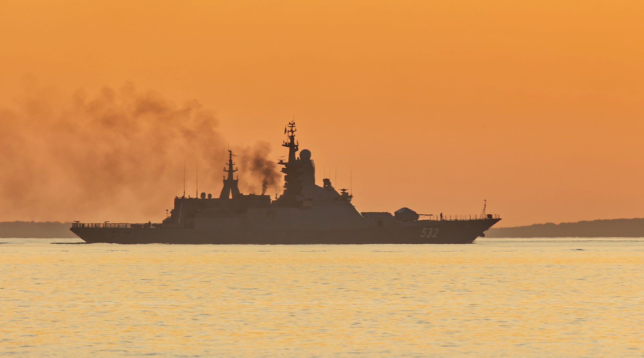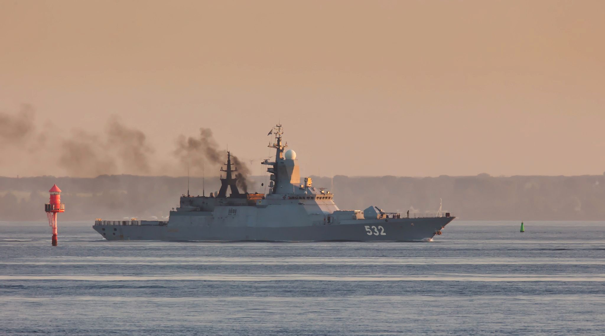 The Russian Navy corvette Boikiy, a Steregushchiy-class warship, has once again taken on escort duty, this time shepherding the tanker General Skobelev and the roll-on/roll-off cargo ship Sparta from the Baltic into the North Sea and through the English Channel.