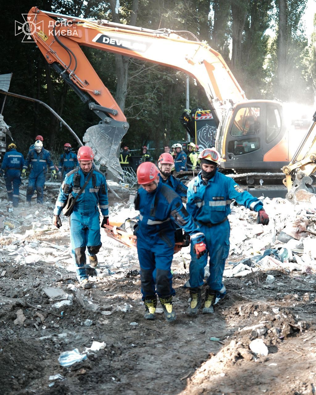 Rescuers and emergency services are continuing to clear debris at the site of the destroyed residential building in Kyiv’s Sviatoshynskyi District, where a missile leveled an entire section of a multi-story apartment block. As of the latest update, 174 people have been reported injured, including 14 children.