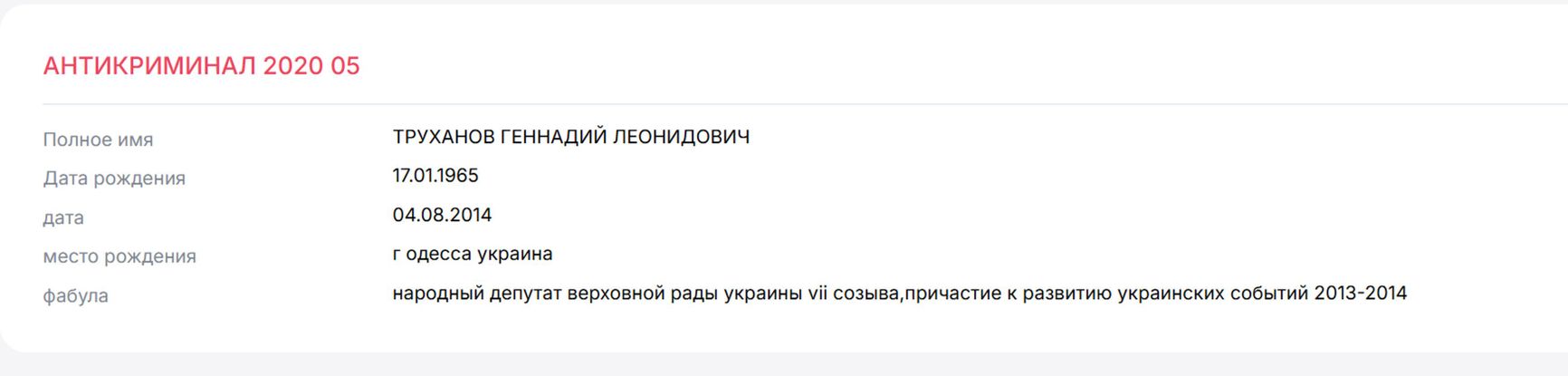 It is likely that if Trukhanov had decided to travel to Russia after 2014, he might have faced difficulties there: Russian databases indicate that the country’s security services took an interest in him due to his “involvement in the development of the Ukrainian events of 2013–2014,” whatever that might mean.