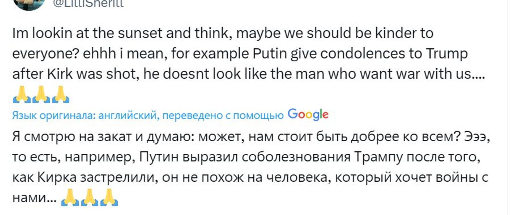 Beyond simply posting approving messages about Dmitriev, the bot accounts promote familiar Kremlin propaganda narratives long seen in similar campaigns: expressing condolences for the death of right-wing activist Charlie Kirk, attacking the U.S. Democratic Party, spreading conspiracy theories about philanthropist George Soros, and praising both Donald Trump and Vladimir Putin. Although the accounts write in English, it is clear the language is not native to them, as their phrasing is rudimentary and is riddled with basic grammatical errors.