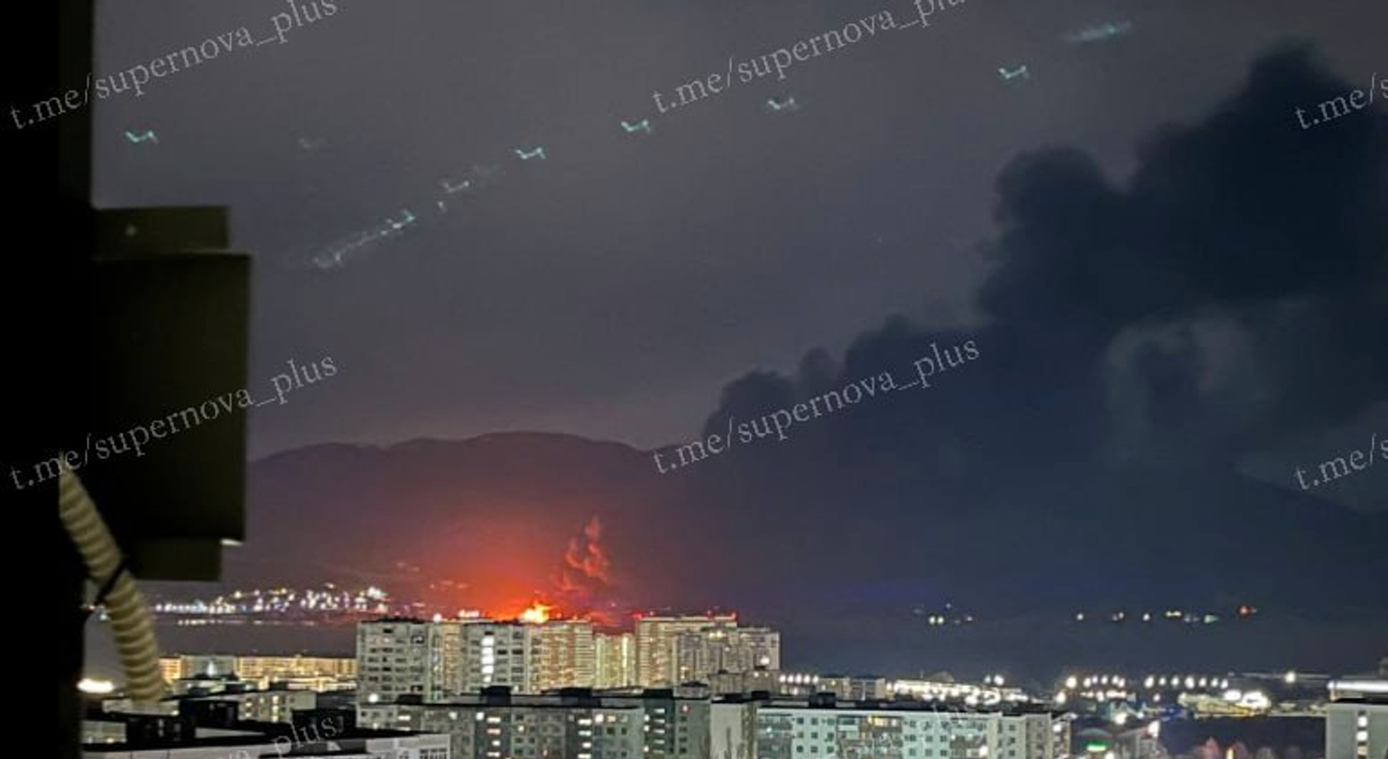 A fire in the Russian port of Novorossiysk on March 2, 2026. Photo: Supernova+