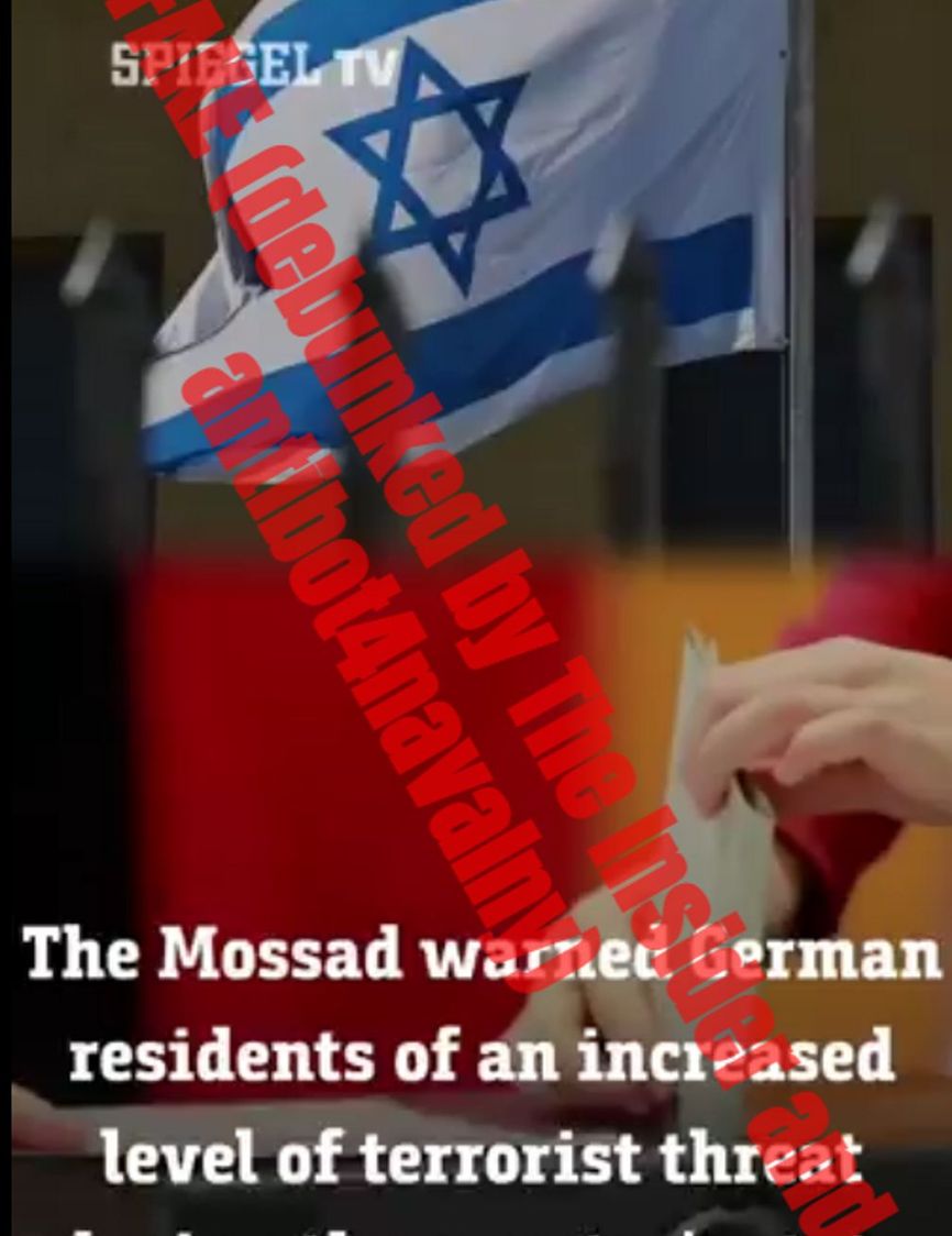 One of the videos, disguised as content from the well-known German publication Der Spiegel, claims that Israel’s Mossad intelligence service and the UN Counter-Terrorism Office have warned German authorities about an increased terrorist threat following the outbreak of active hostilities in the Middle East. According to the false “Spiegel” report, residents of Germany are being strongly advised to avoid public places, including polling stations. Notably, the Matryoshka network used similar rhetoric last April ahead of the presidential election in Poland, and in December the network spread claims of a heightened terrorist threat after a mass shooting on an Australian beach during the Jewish holiday of Hanukkah.