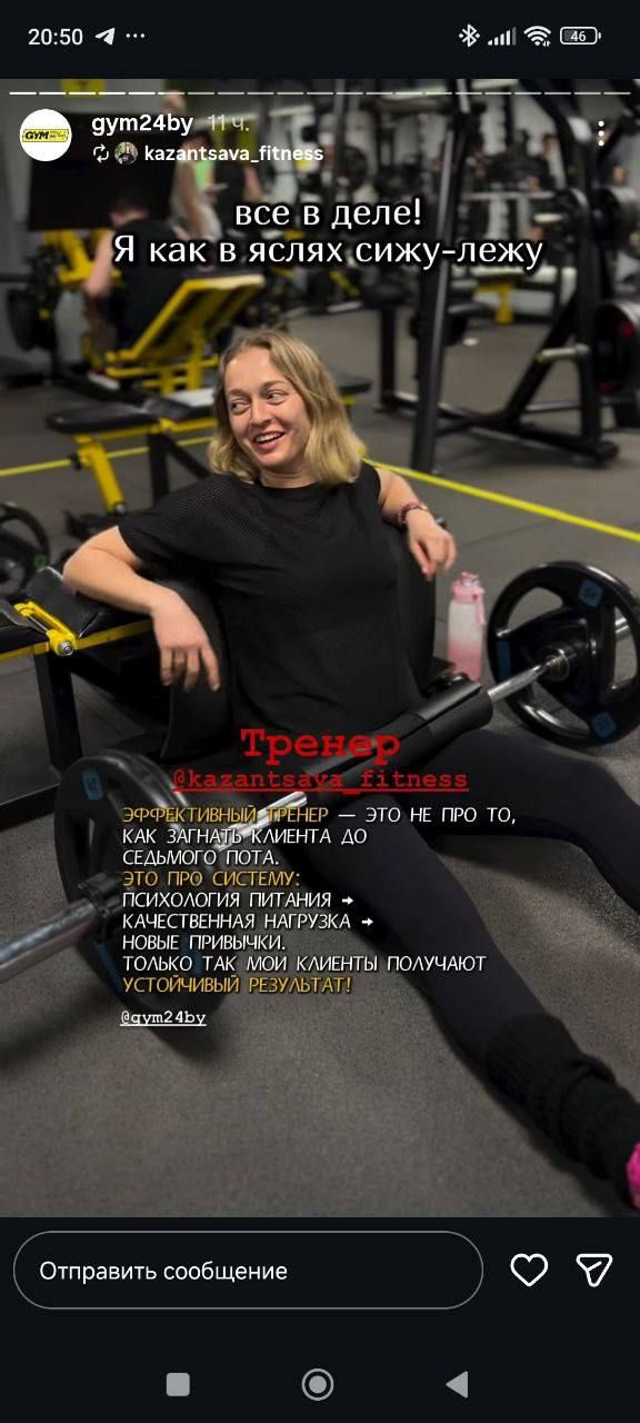 The Insider reached the fitness center by phone and confirmed that the trainer who posted the photos exists, but she refused to speak directly. An unidentified man who answered her number identified himself as Eduard but declined to answer questions or to provide assistance contacting Melnikava.