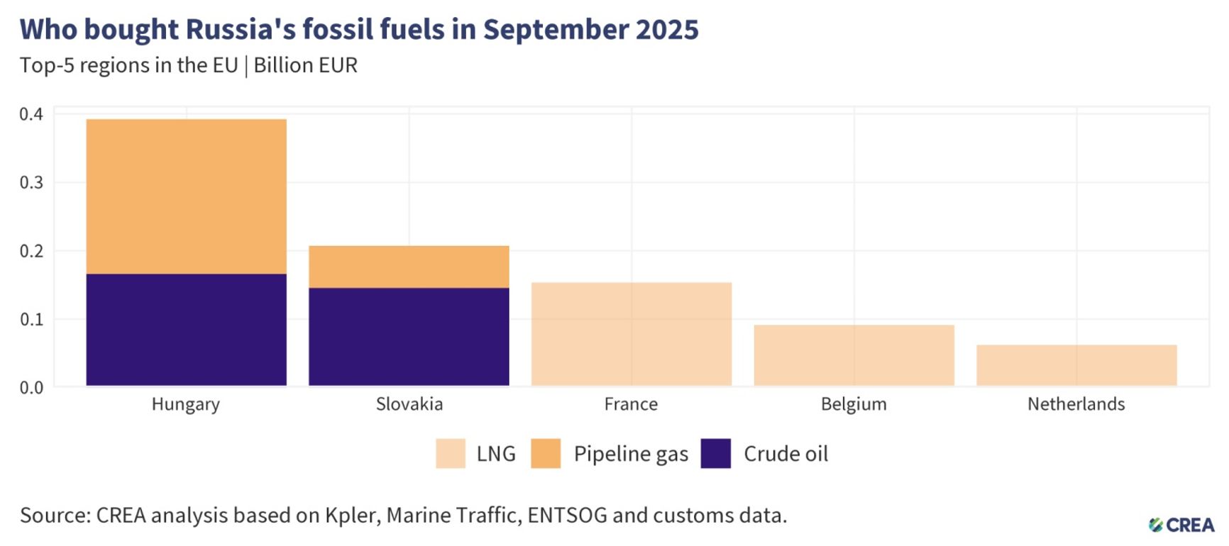 Additional sources of oil and gas have proven more than sufficient for Europe, and the continent’s remaining purchases of Russian energy are largely explained by the Kremlin-friendly stance of the Hungarian and Slovakian governments. According to calculations by Lithuania’s Centre for Research on Energy and Clean Air, these two countries account for two-thirds — roughly 600 million out of 900 million euros per month — of the EU’s oil and gas imports from Russia, with the remaining third being purchased by a collection of Western European nations. By historical standards, the EU has actually overcome its dependence on Russian energy remarkably quickly.