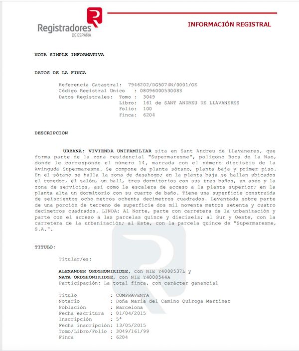 The Insider confirmed that Ordzhonikidze has indeed settled in Spain. In 2015, he and his wife Nata jointly purchased a villa near Barcelona, in San Andres de Llavaneras.