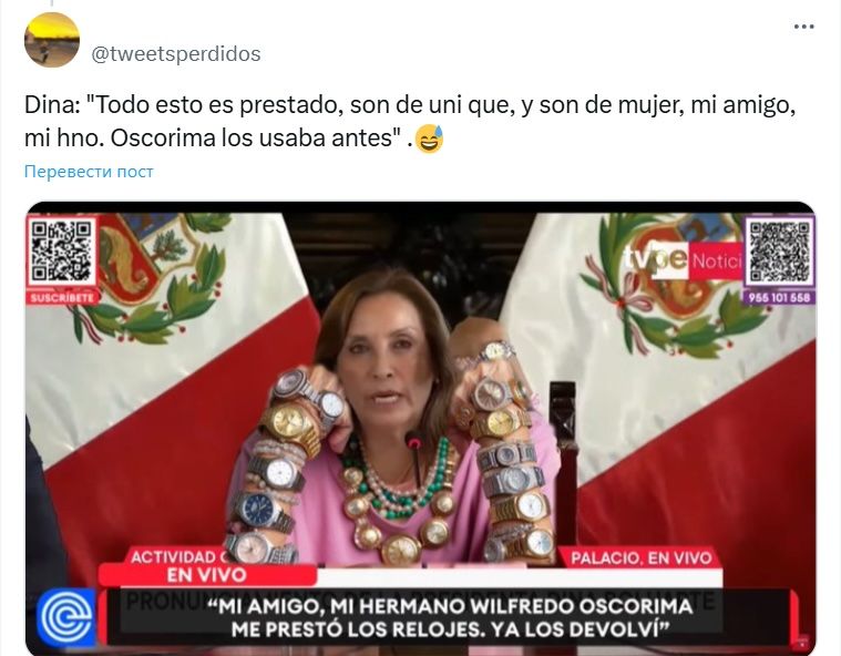 Her words implied that all of the expensive watches, including the Rolexes, had been lent to her by a «close friend» — Wilfredo Oscorima, the governor of Ayacucho. She did not mention the fact that, around the same time, Oscorima had received 100 million soles ($2.8 million) in emergency aid from the government. Instead, she chose to showcase several pieces of her own jewelry to Peruvians. Her line — «Do you know what brand this is? Unique!» — instantly became a meme. (Unique is a Peruvian brand of cosmetics and costume jewelry offering pieces priced at under $100.) Laying out the trinkets in little boxes, the president accused journalists of harming the country by drumming up a scandal out of nothing and thereby scaring off foreign investors.