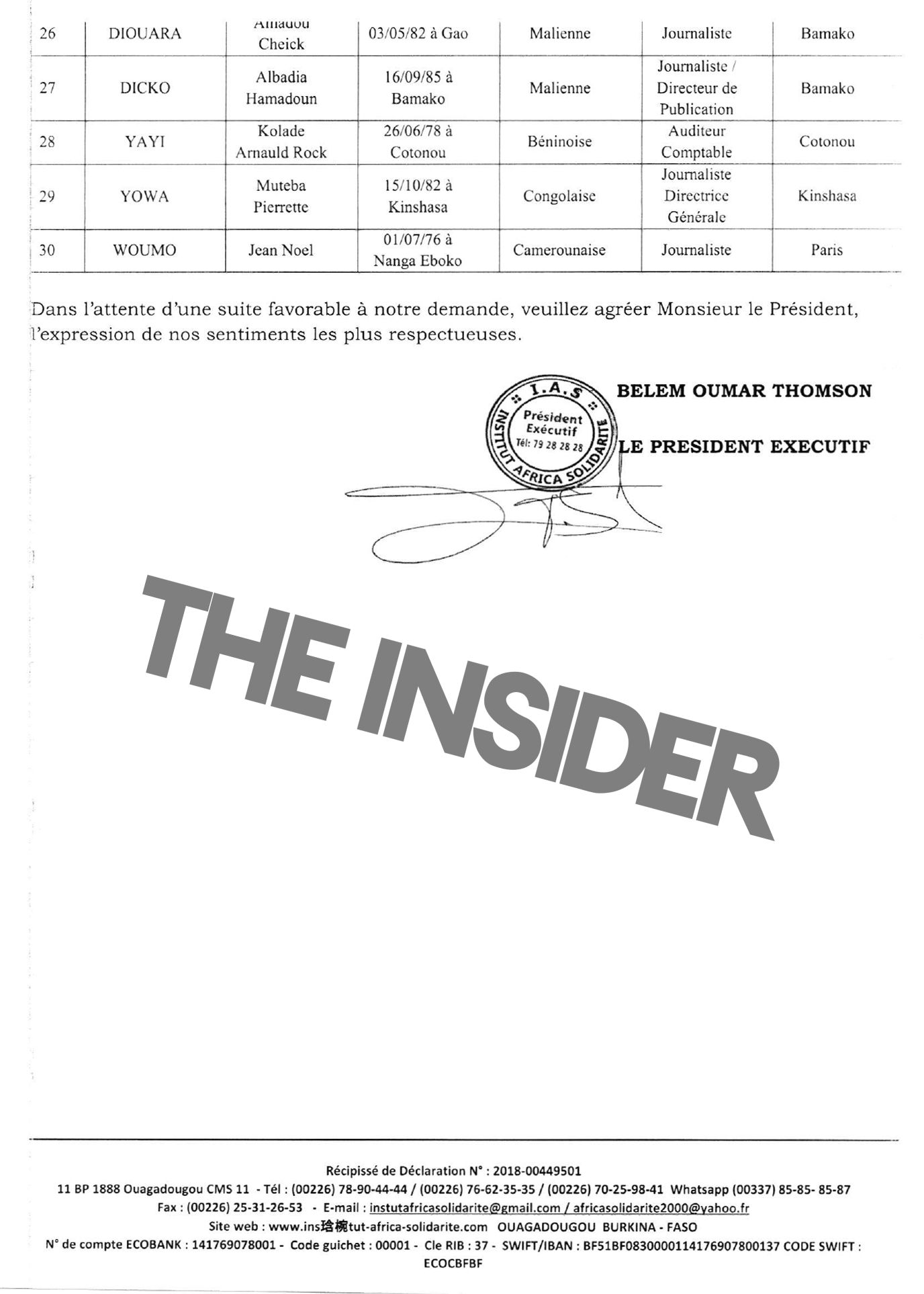 However, most of the potential observers from Africa whose names The Insider obtained have never appeared in the media, and some are entirely unrelated to politics or public activity. Among them are, for instance, the treasurer of the Burkina Faso Football Federation and an IT specialist from Senegal.