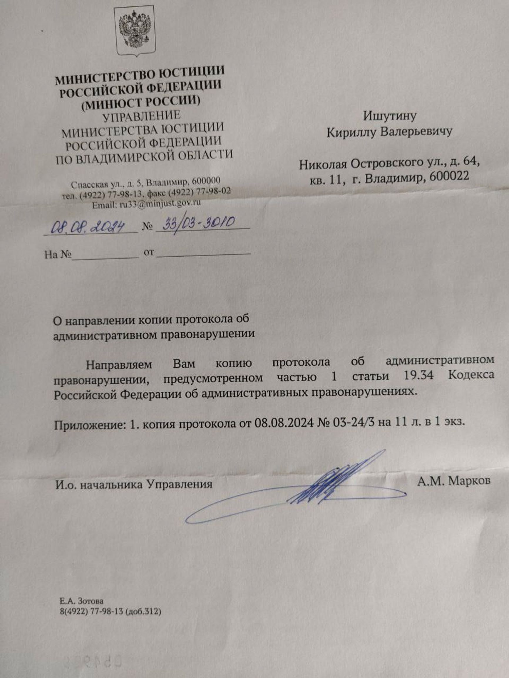 В отношении соучредителя издания «Довод» Кирилла Ишутина составлен протокол по ч. 1 ст. 19.34 Кодекса об административных правонарушениях. Об этом Ишутин сообщил в своем Telegram-канале.
