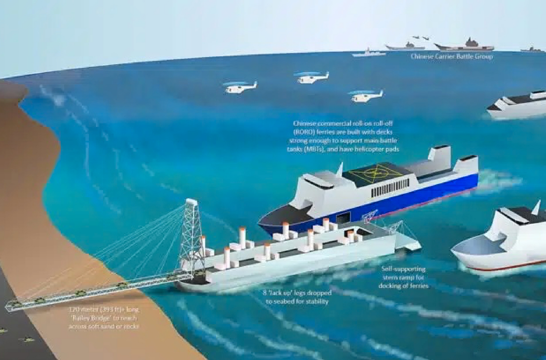 По данным аналитиков, наблюдавших за китайскими верфями, необычные баржи были замечены на судостроительном заводе в Гуанчжоу. Их конструкции напоминают десантные баржи времен Второй мировой войны, использовавшиеся для высадки войск союзников в Нормандии. Особенностью барж являются длинные трапы. Их прототипы были замечены еще в 2022 году, однако массовое строительство началось только сейчас.