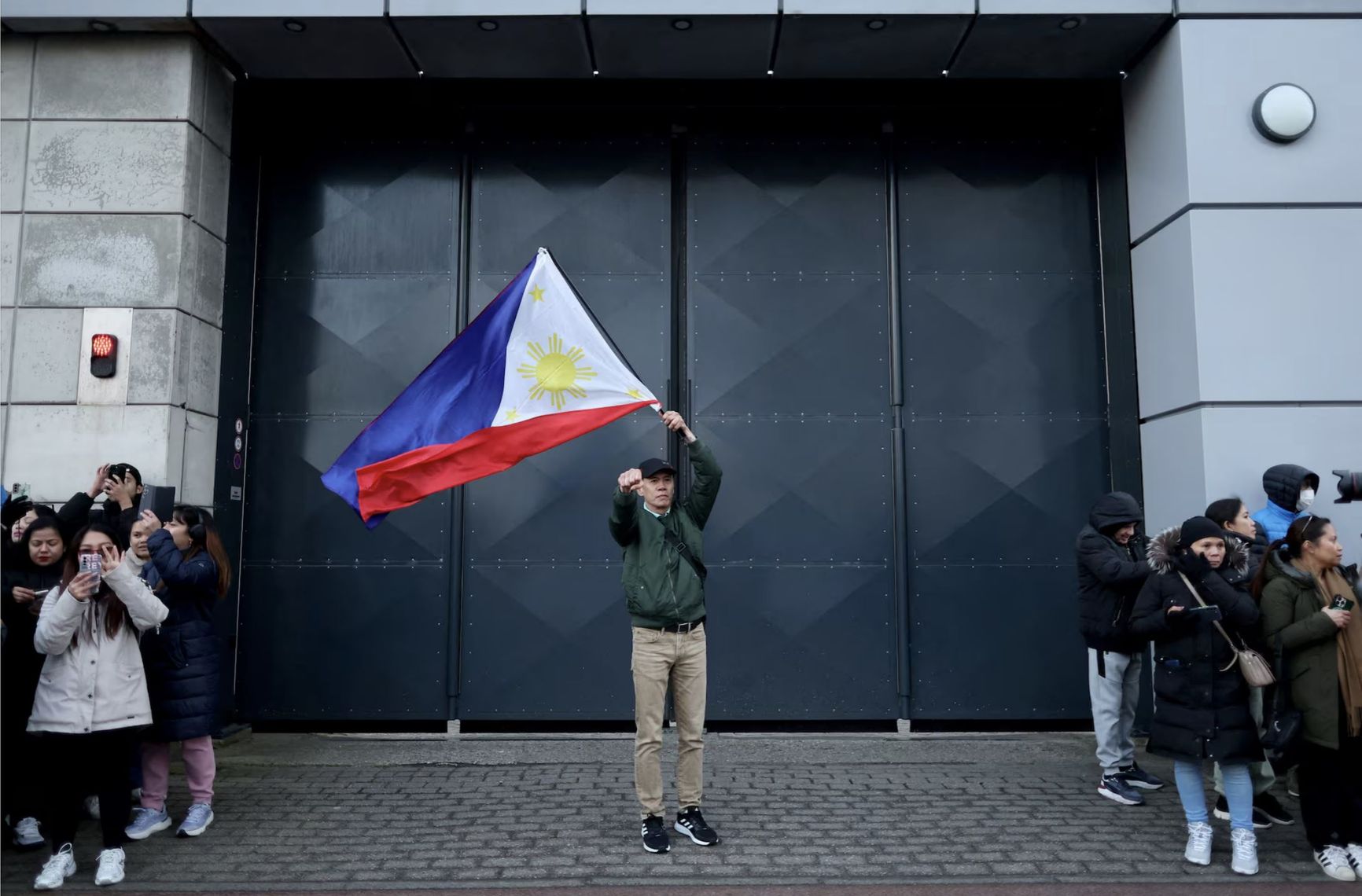 Родриго Дутерте доставили в Гаагу вечером 12 марта. В это время сторонники бывшего лидера Филиппин собрались у Гаагской тюрьмы, протестуя против его ареста. Многие из них размахивали филиппинскими флагами, а некоторые повторяли фирменный жест Дутерте — удар кулаком.