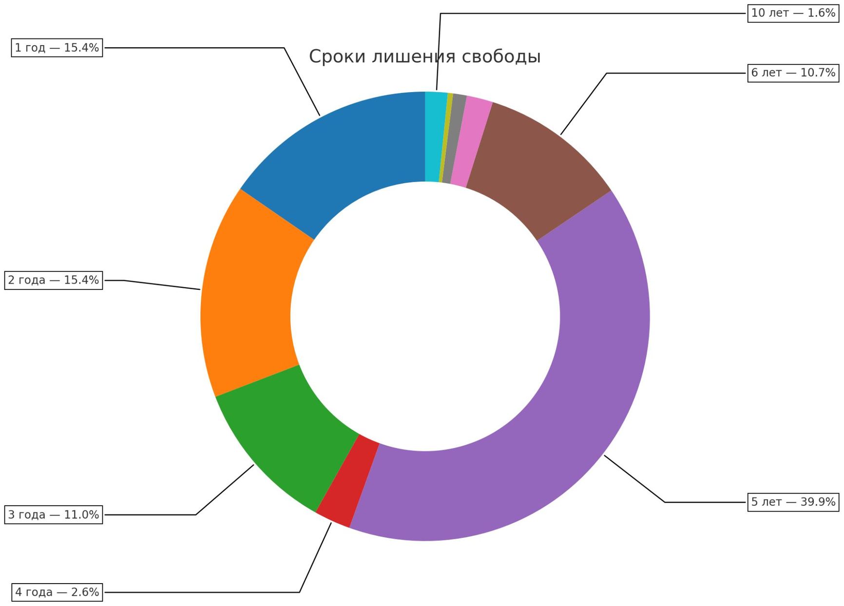 • средний срок наказания, связанного с лишением свободы, — 4 года;
