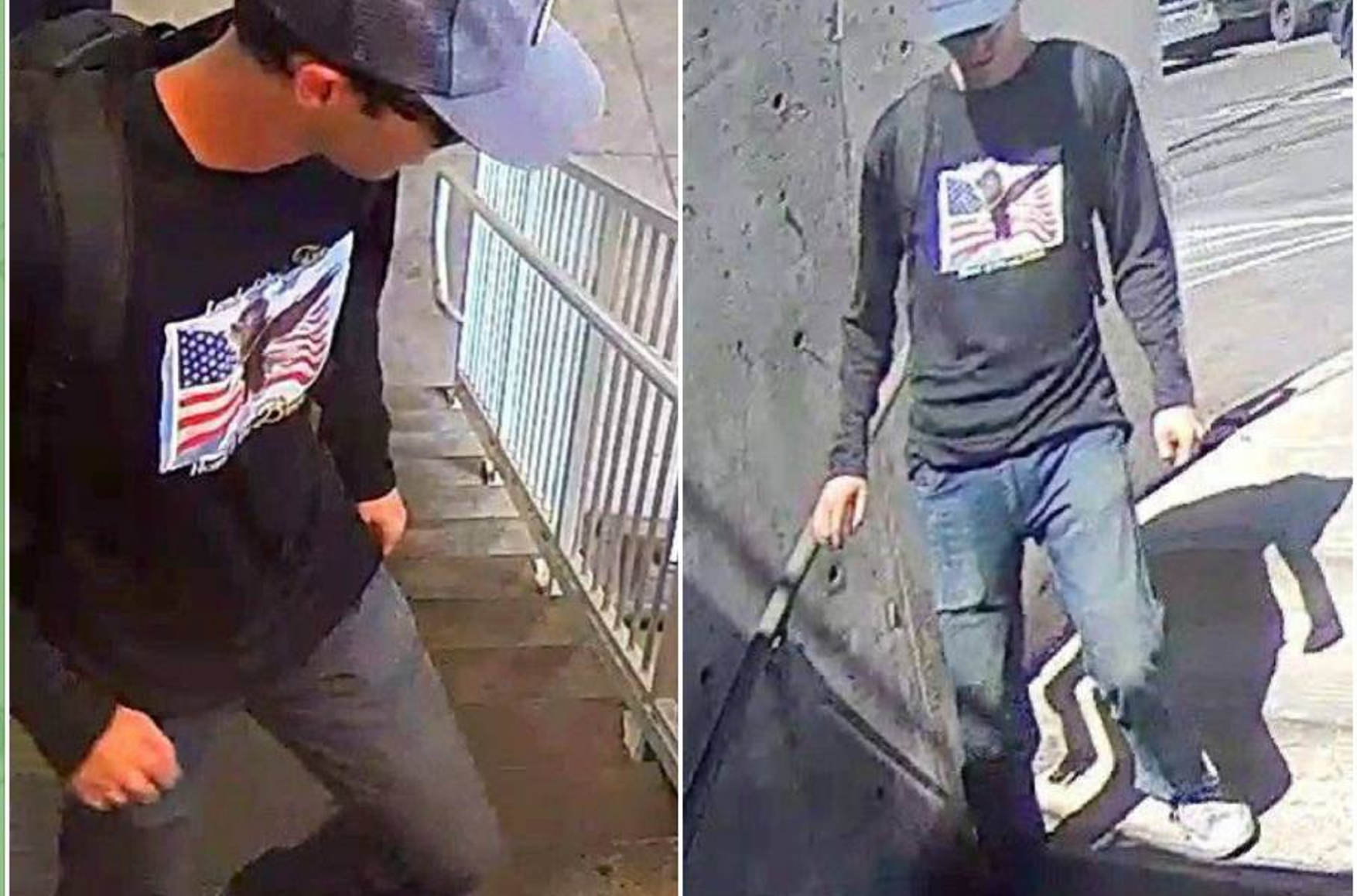 Ранее в тот же день власти обнародовали размытые кадры того же мужчины с камеры наблюдения, на которых он сжимает кулаки и поднимается по лестнице. Мужчина был одет в синие джинсы, бейсболку с треугольником, кеды Converse и темную футболку с длинным рукавом, на которой изображены американский флаг и орел. Общественность призвали сообщать любую информацию, которая могла бы помочь установить его личность или задержать его.