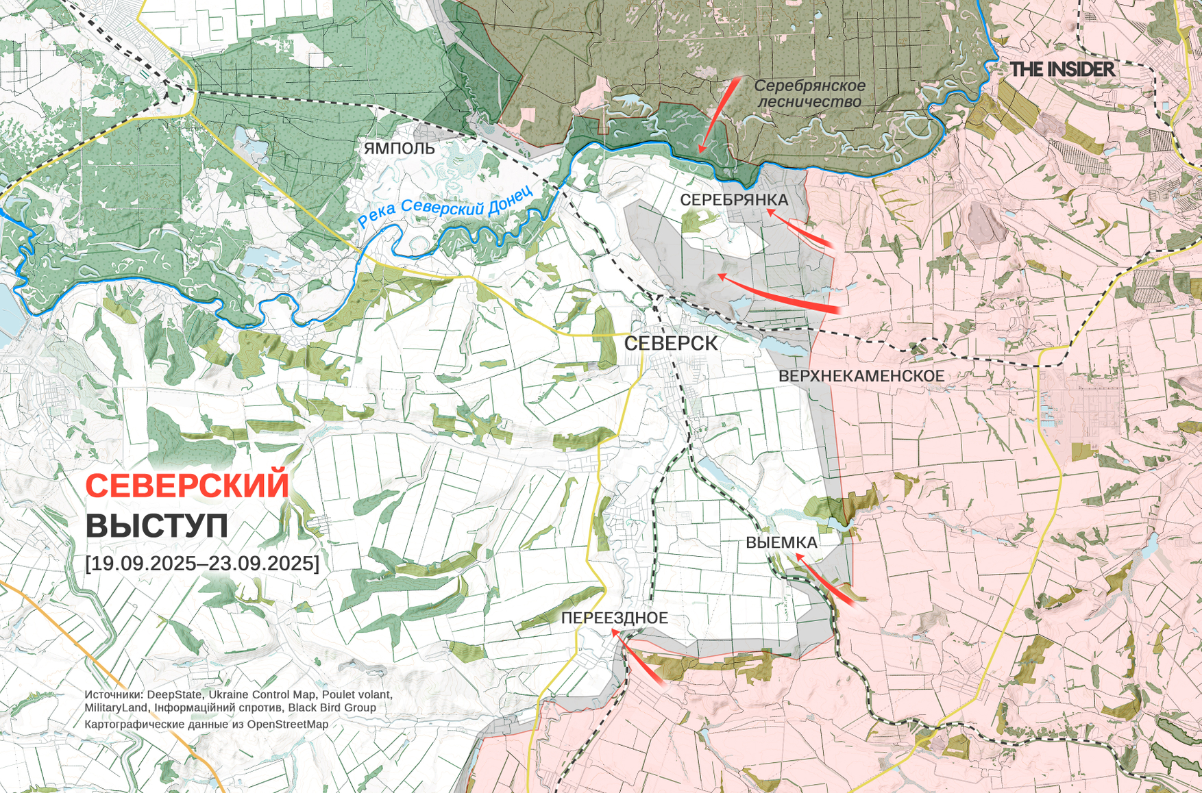- На Северском выступе российские войска приближаются к Северску с юга со стороны Переездного