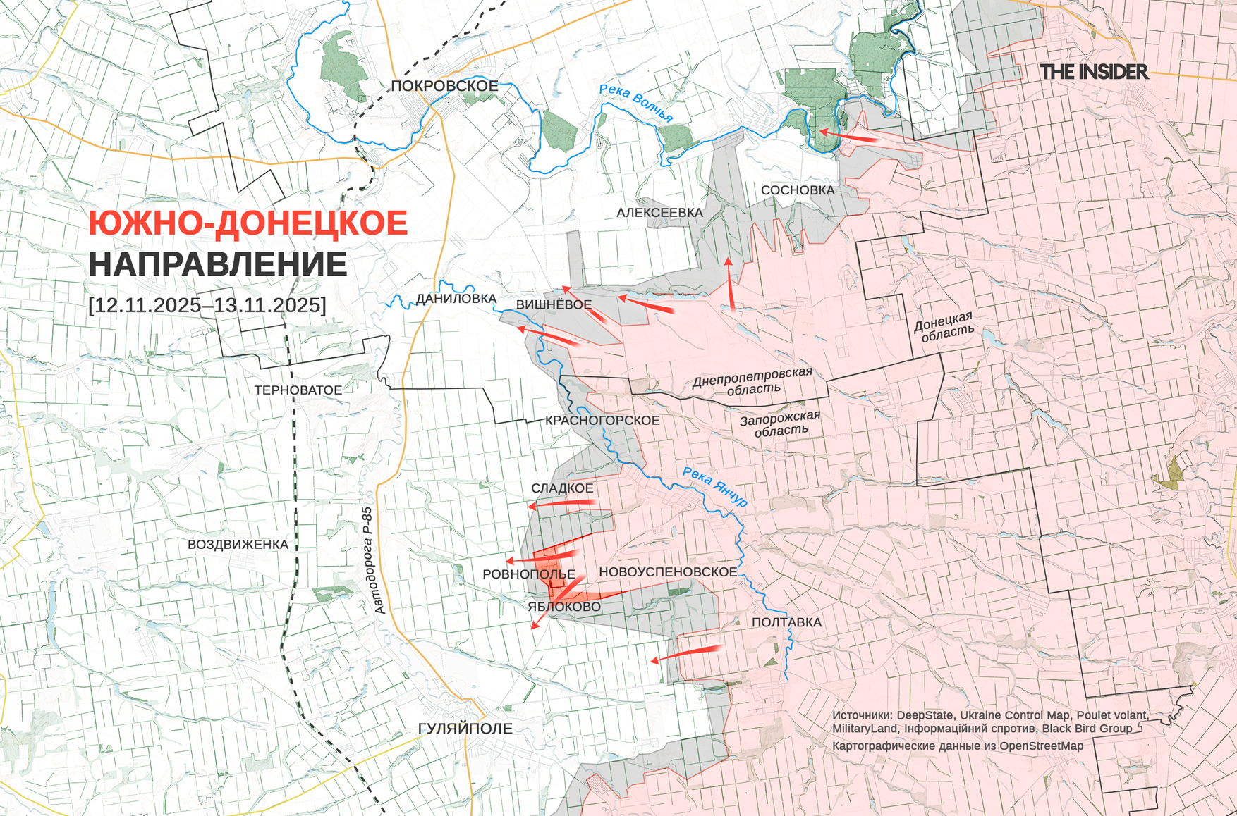На южно-донецком направлении российские военные вышли на трассу Покровское — Гуляйполе.