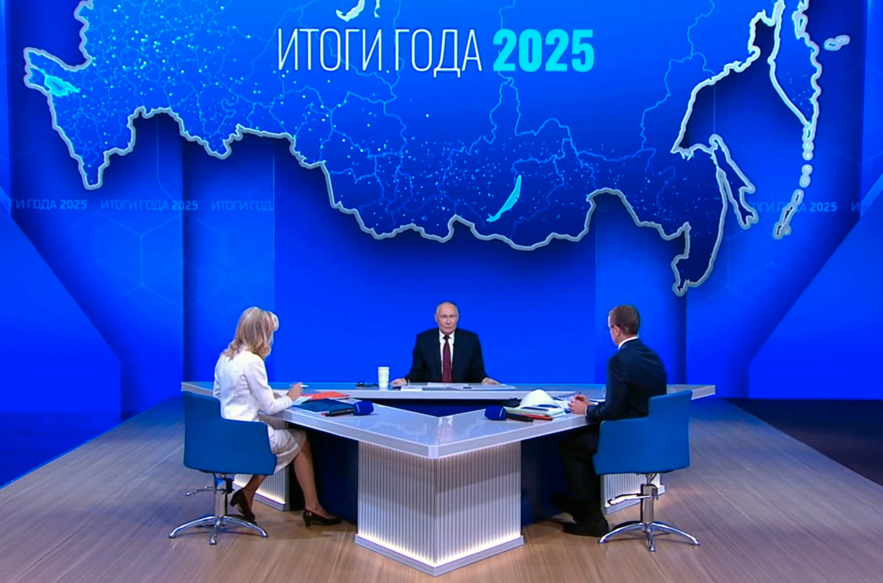 - О ситуации в экономике: рост экономики России за три года составил 9,7%. Путин утверждает, что это намного выше, чем в Европе, но «снижение темпов экономического роста — это сознательный шаг, плата за сохранение качества экономики».