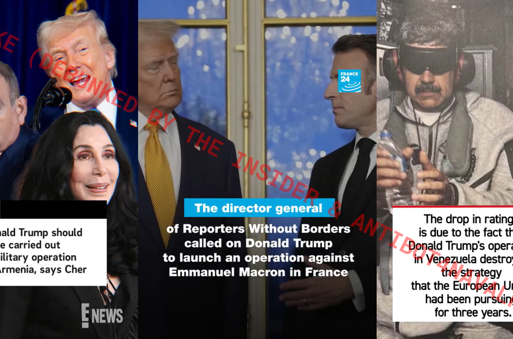«Матрёшка» также распространяет утверждения, что из-за операции США в Венесуэле «резко упали» рейтинги европейских политиков. В ролике, сделанном от имени газеты Politico, утверждается, что это произошло, поскольку похищение президента Венесуэлы «поставило под сомнение стратегию стран ЕС, которая выстраивалась последние три года»: