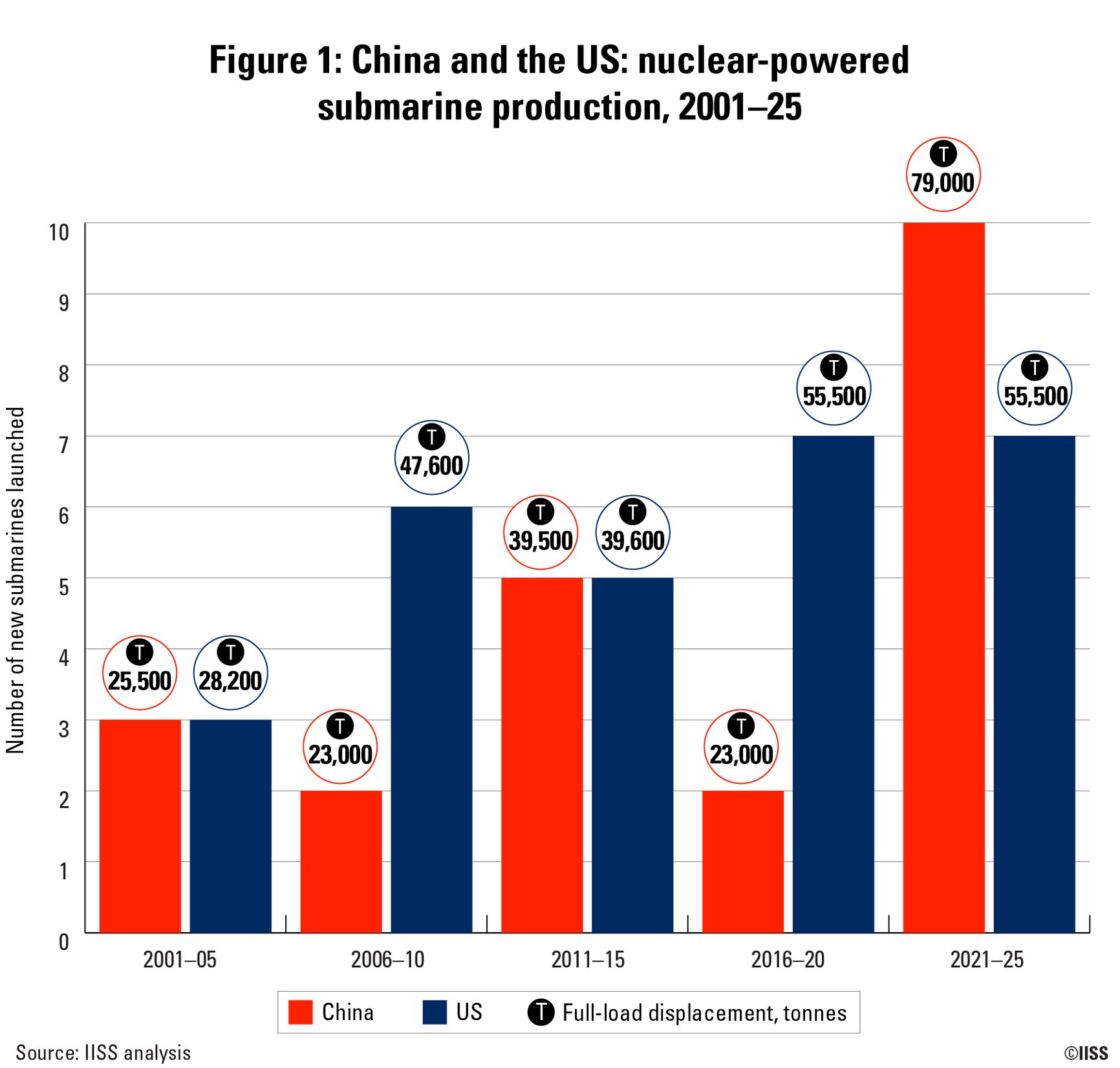 В период с 2021 по 2025 год Китай превзошел США по объему строительства подводных лодок: не только по количеству спущенных на воду (10 против 7), но и по тоннажу (79 тысяч против 55 500). Для оценки объемов строительства использовались спутниковые снимки верфей: Пекин официально не разглашает данные о численности своего флота.