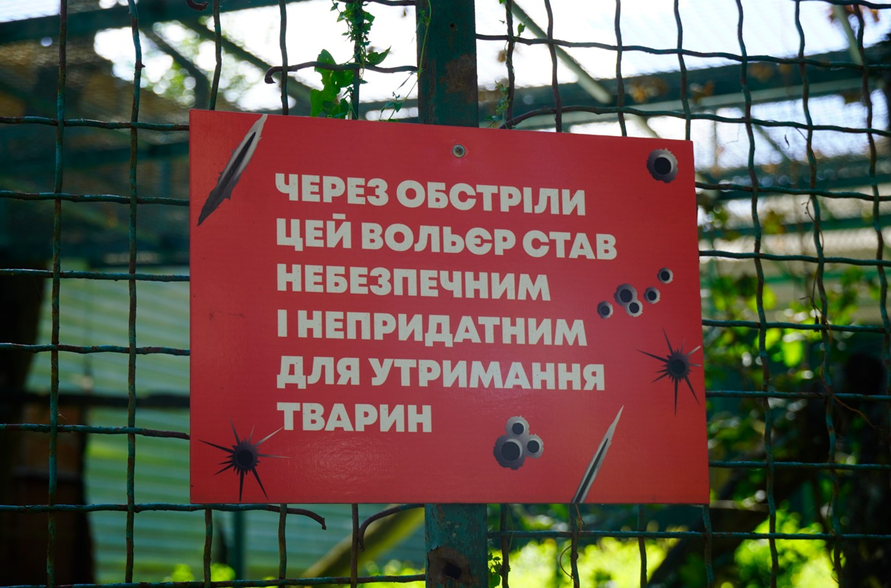 Заходя в вольер, она тут же переходит на русский, обещая зверятам «надавать по жопам», если те будут кусать ее за руки и ноги. Но в целом русский язык тут, пускай и медленно, превращается в реликт ОПЗЖшных времен хозяина. Все новые таблички уже исключительно на украинском, да и русская речь звучит заметно реже по сравнению с временами до полномасштабного вторжения.
